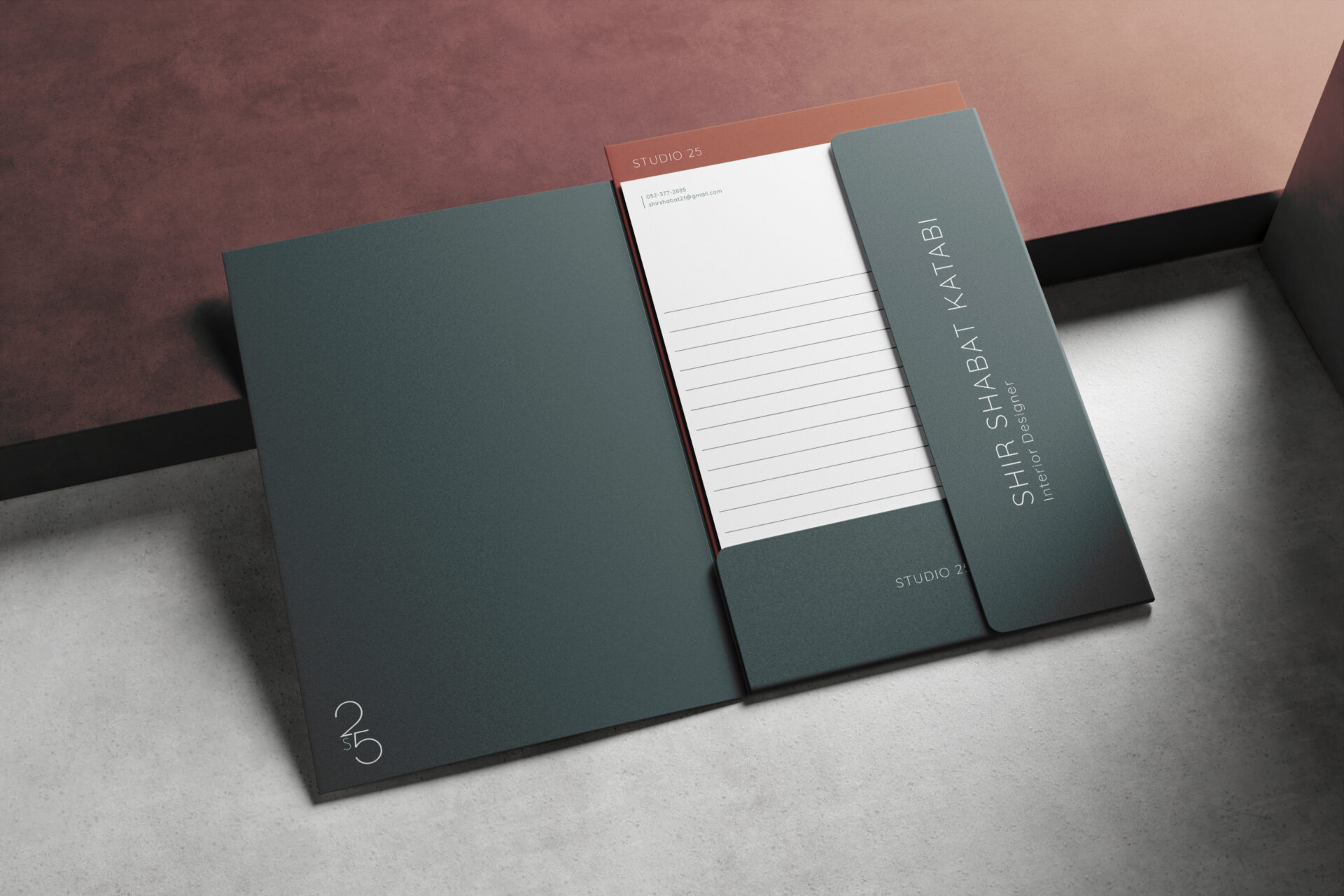 פיתוח זהות מותג מלאה | עיצוב לוגו | פיתוח שפה ויזואלית | פלטת צבעים | עיצוב כרטיסי ביקור | תיקיות פרויקטים | חומרי דפוס | חותמות ומיתוג | ברושורים | הנחיות שימוש למותג