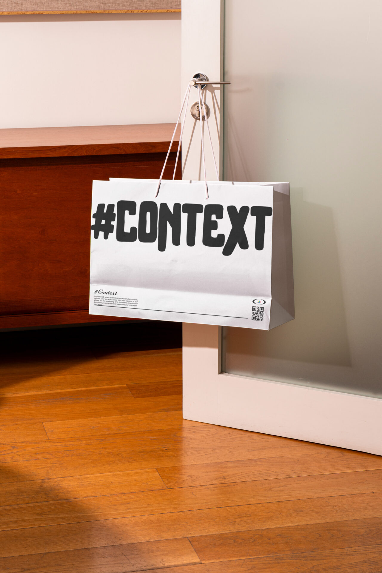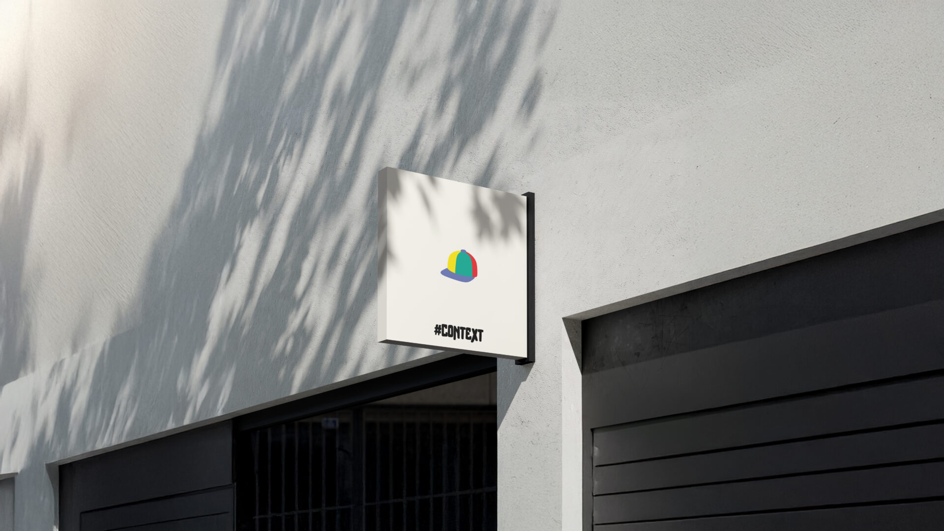 השפה הגרפית של #CONTEXT בנויה על משחק בין צבעוניות נועזת לבין מינימליזם עיצובי נקי. הכובע הצבעוני מתפקד כעוגן ויזואלי חזק – הצבעים החדים והמשטחים הגאומטריים חוזרים על עצמם לאורך כל נקודות המגע של המותג, יוצרים עקביות ויזואלית ברורה.