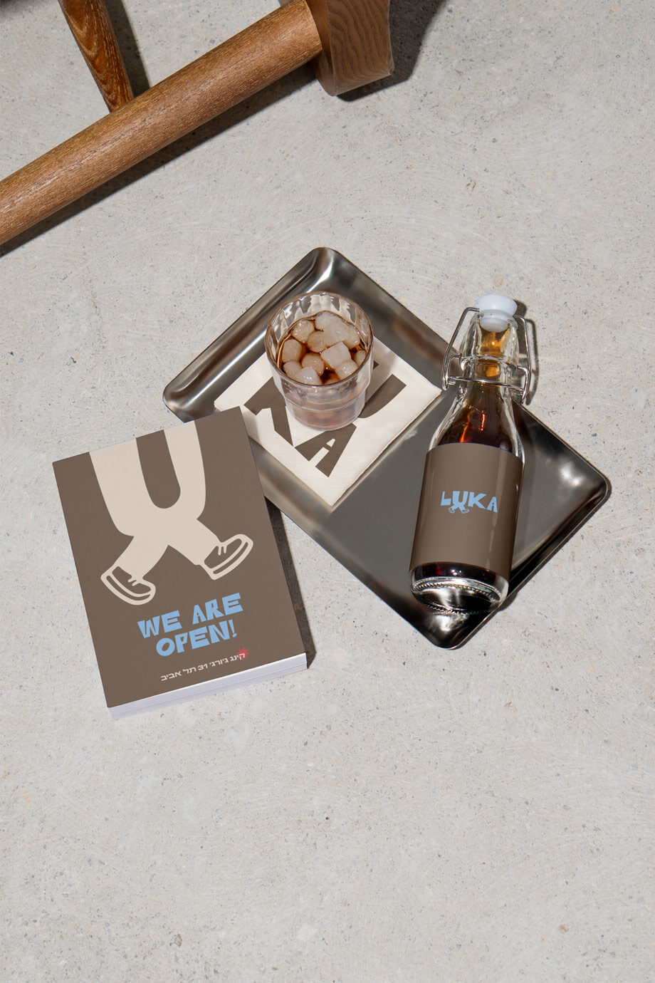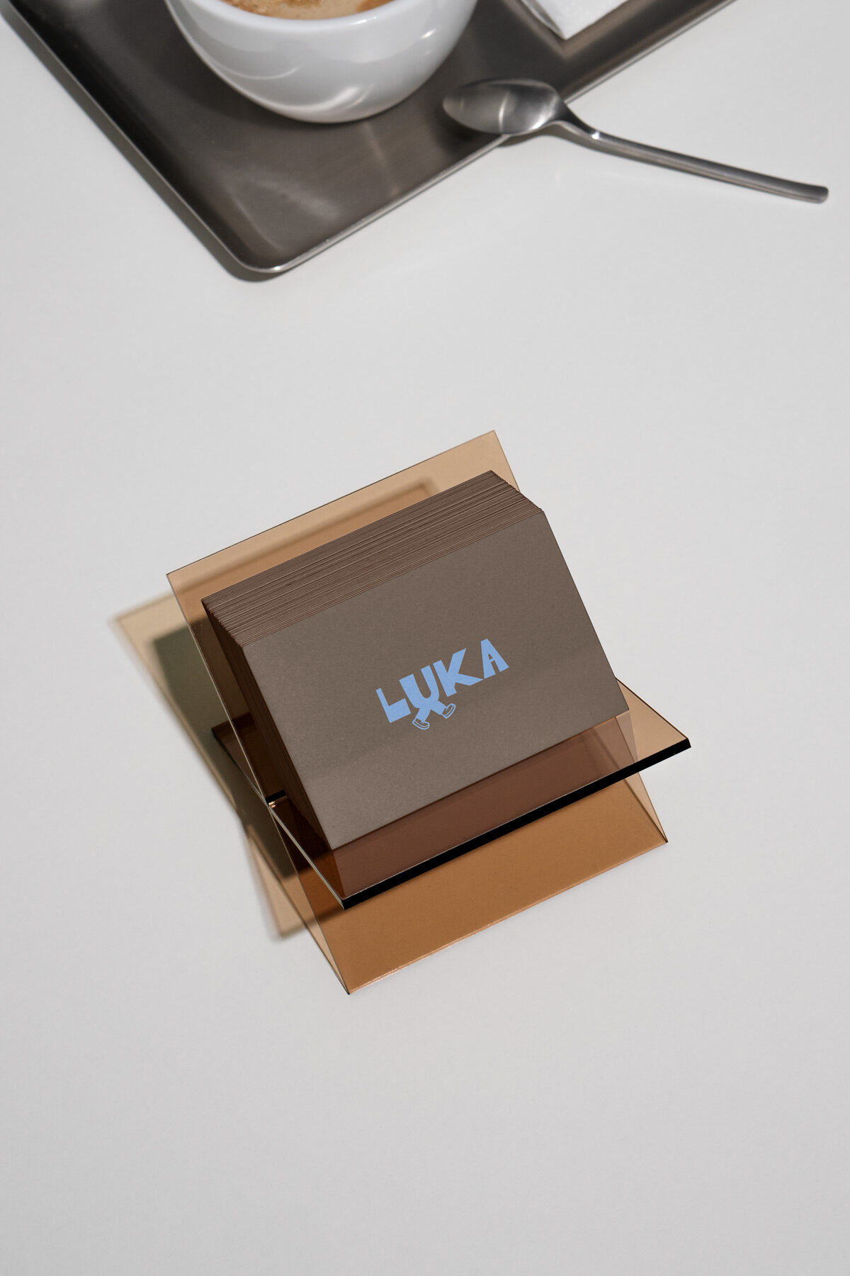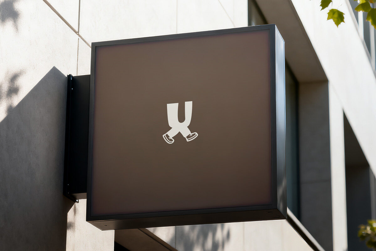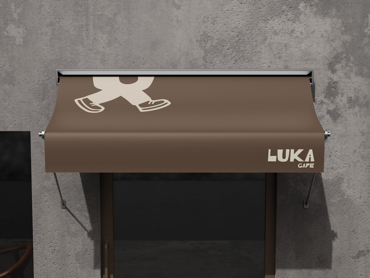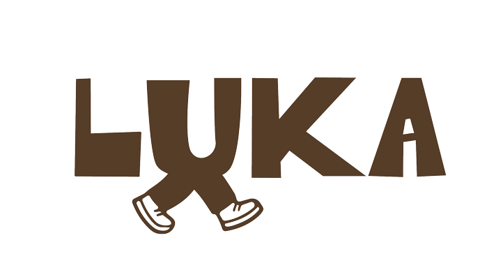 הלוגו הראשי של LUKA משלב טיפוגרפיה נקייה עם רגליים מתחת לאות u אלמנט שמייצג תנועה, צעידה וטייק אווי.