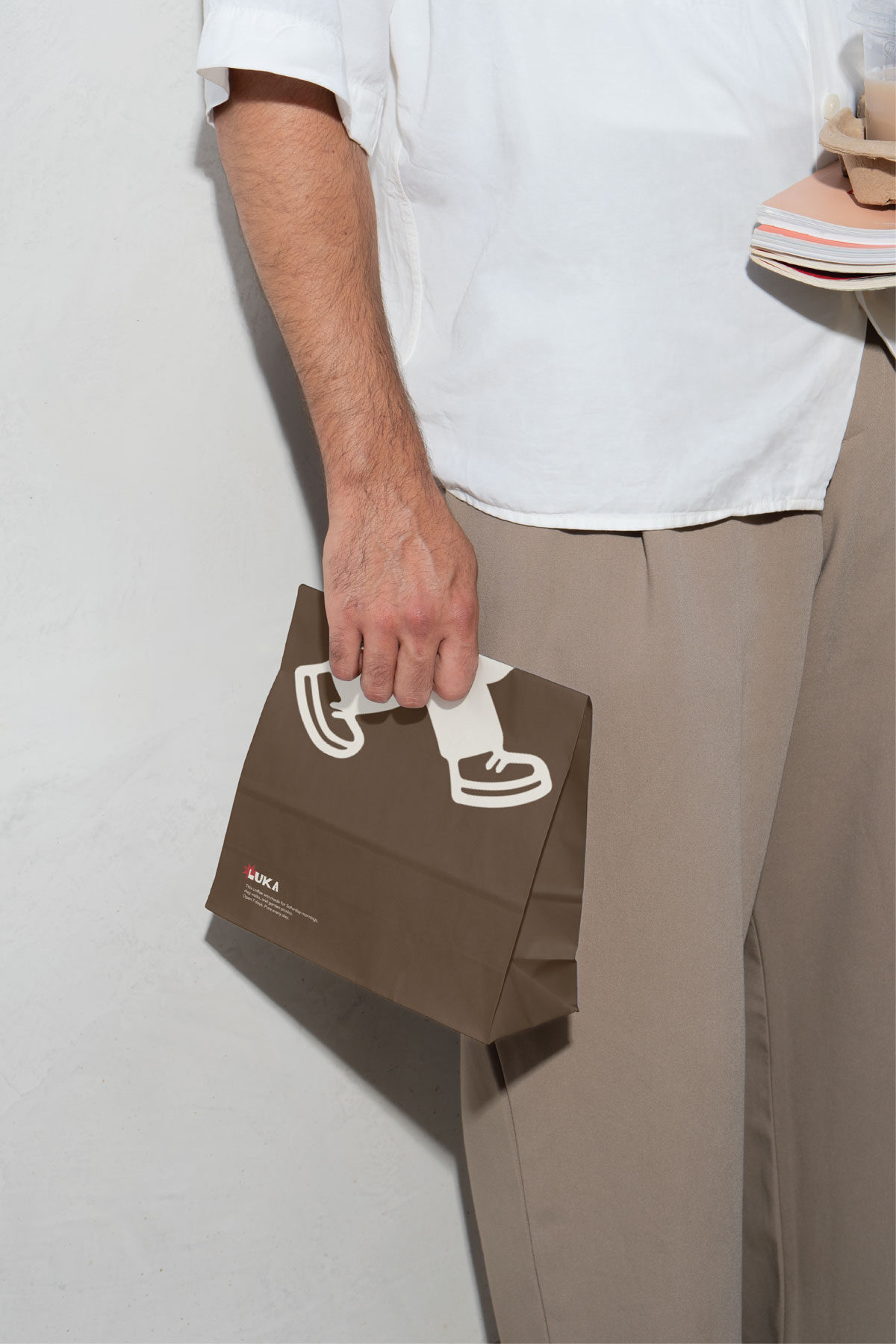 הרגליים אינן דימוי ישיר, אלא בחירה גרפית שמבטאת קצב, רחוב וחוויית Grab & Go – מותג שנמצא בתנועה מתמדת, בדיוק כמו הלקוחות שלו בלב העיר