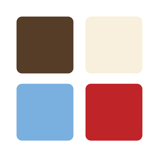 בחרנו בחום עמוק כבסיס יציב וחומרי בהשראת עולם הקפה, שמנת רכה לניקיון ואוויר, כחול שמכניס עומק עכשווי, ואדום כאקסנט מדוד שמייצר נקודת משיכה
